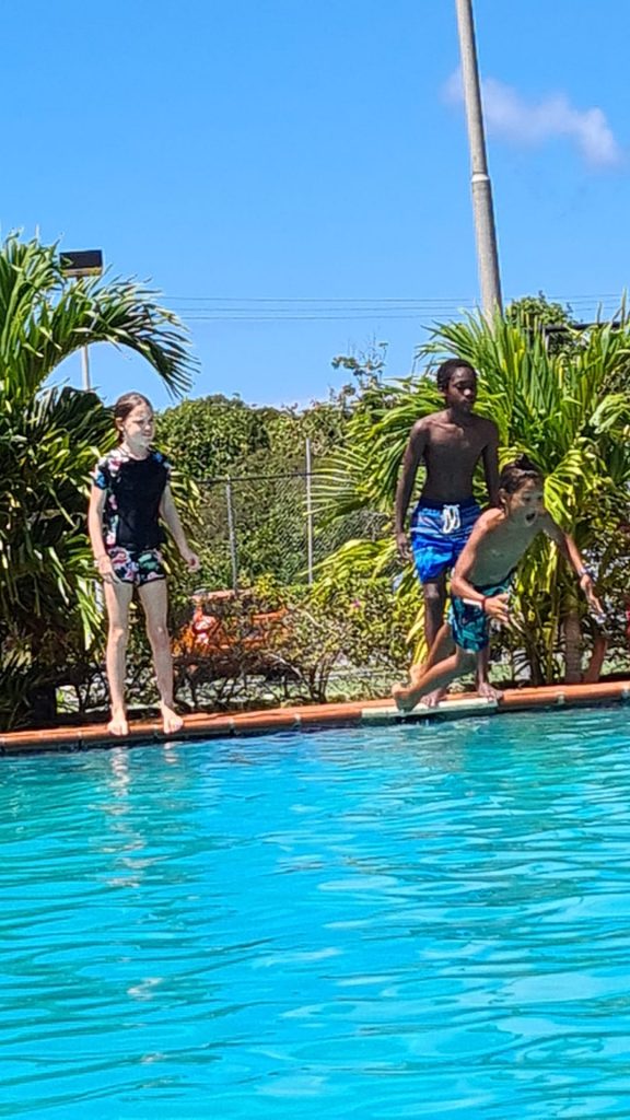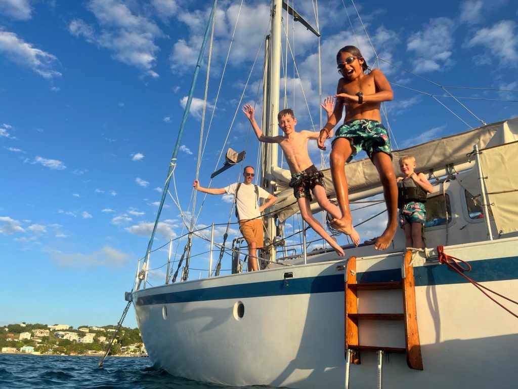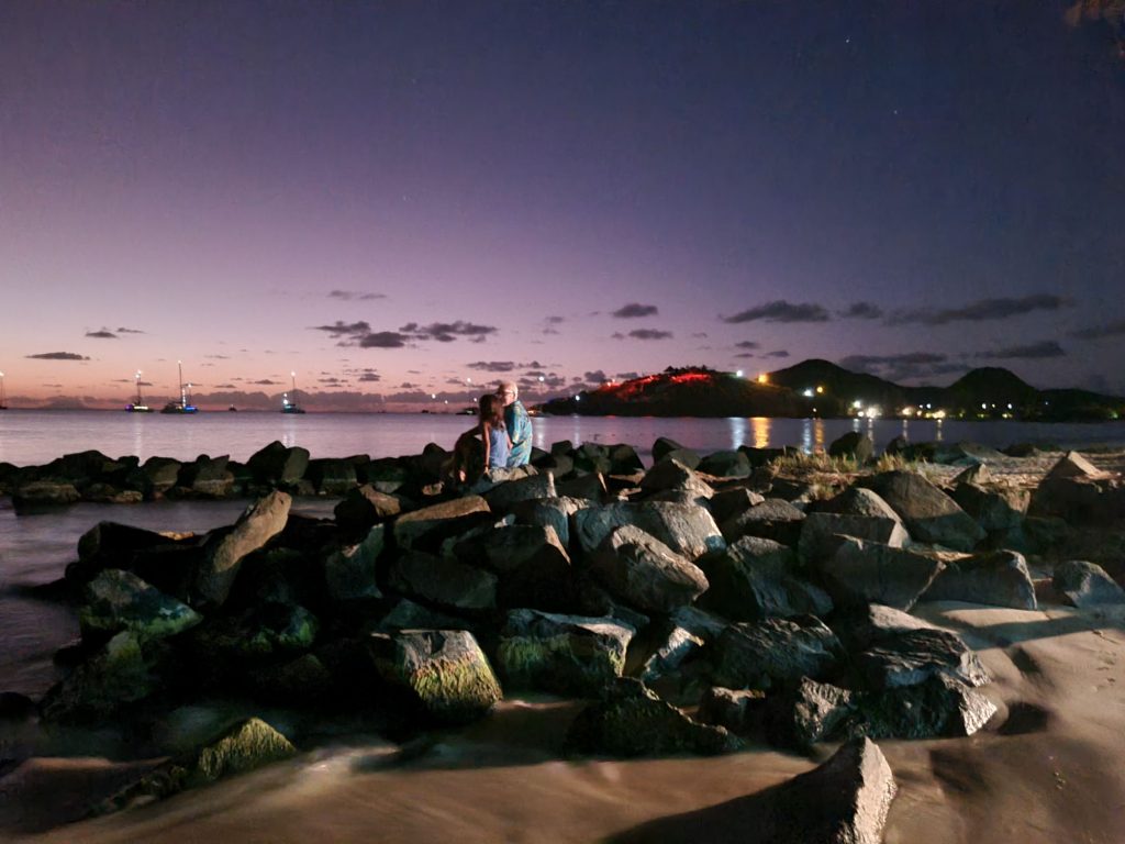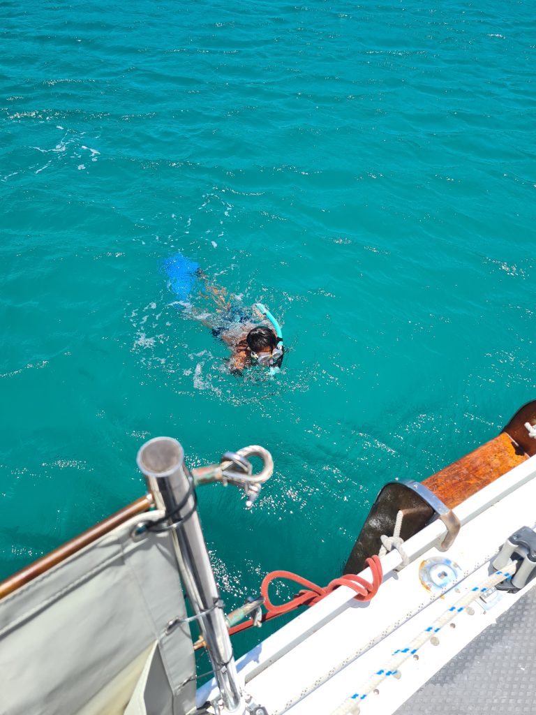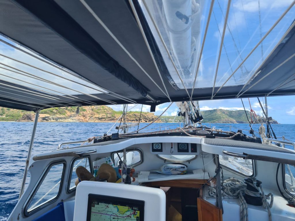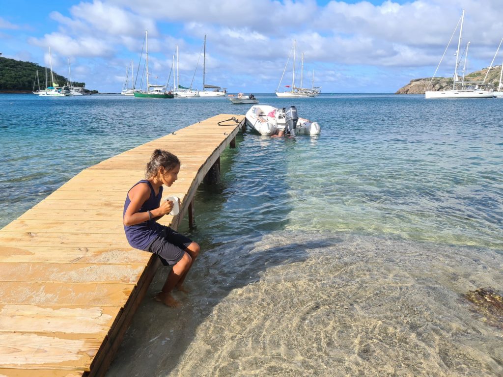 We were heavily heeled and sailed upwind towards Antigua. I don’t enjoy being heeled over, it very easy to fall off the boat, but you do go faster. Jolly Harbour was our first taste of Antigua and it was beautiful, there are many postcard perfect beaches. We spent a few nights in the marina and said a sad goodbye to Shona and Al and a big hello to maintenance. Archie continued his diving lessons and has become an excellent diver. He is trying to teach me!
