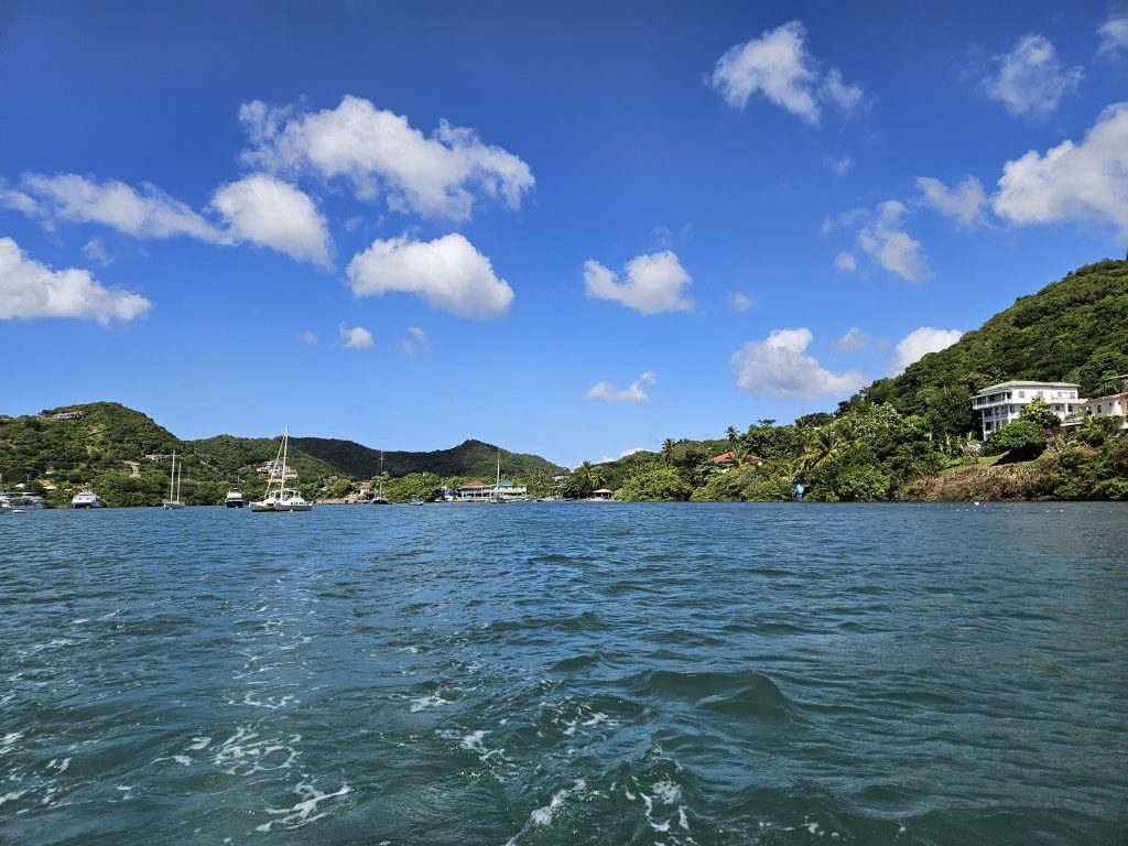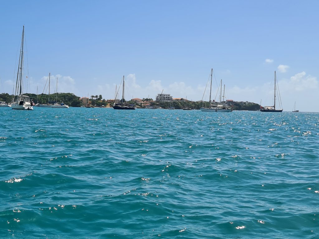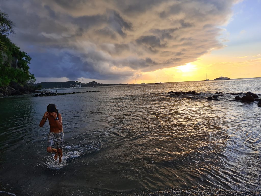 We then sailed to the south to Prickly, Clarks Court Bay and frequented Le Phare Blue. This is where we met the one of the loveliest couples, Nigel and Susan. Another couple we met, went through a Hurricane on their boat. Their stories were crazy and scary. The heat was intense but wonderful. We took part in a HASH, which is a local island community based walking/running group. It was great fun and a wonderful way to experience the amazing landscape. Mango, coco bean, nutmeg, banana’s and papaya are just a few of the amazing fruit/veg/spice that can be seen growing wild. Fruit and veg were expensive, so glad we did a substantial essential shop in Europe.