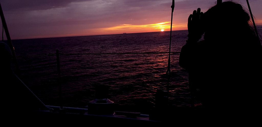 Calm, beautiful big blue long rollers greeted the four of us. Graham joined us in Penzance, and we headed South. We motored all the way as the wind was on holiday too. We saw dolphins, whales, ate and slept and did watches. We talked and talked and ate and slept some more. The night sky is amazing on passage, sunsets and sunrise fill your soul with the wondrous beauty of life.