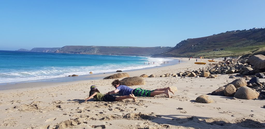 Penzance is beautiful, warm and everyone around us were on holiday too. The marina/boat yard was our first wall mooring. Captain Finn was amazing at parking. The space was just big enough for us and the wall just looked evil. I imagined it said, “mess this up sonny and you will cry!” He did great, like a natural. Bow nearly touched the wall and then going astern push our stern to starboard and bow to port and just slid in sideways… like a pro. (Donald remember the feeling?) Immensely proud moment for us. We then had another boat moored against ours. We met a very adventurous and wonderful couple called Brend and Silka who were from the Netherlands and sailing AIM. We went surfing and exploring. Archies second favourite sport is surfing! It’s a bit too wild for me. Lands End is interesting, the castle and coastline of Penzance and surround area is breathtaking. Our experienced crew member Graham joined us, and we left the UK.